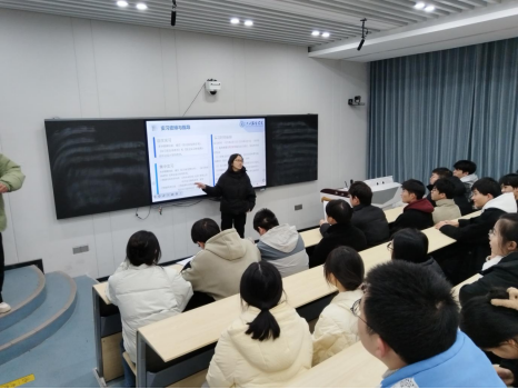 随后,数据科学教研室吴琴琴主任与在场学生详细讲解实习政策与管理方法,详细介绍了本次实习安排的具体内容,包括实习单位的选择、实习纪律规定、实习安排与指导、实习周记的完成与上传等一系列问题。她提到,学生在遵循学生自己的选择情况下,进行分散实习与集中实习相结合。因为实习是学生将所学理论知识应用于实践的重要机会,帮助学生了解社会、锻炼能力、积累经验。通过实习,学生可以深入了解企业运营,学习专业技能,培养职业素养,为未来的职业生涯奠定坚实基础。