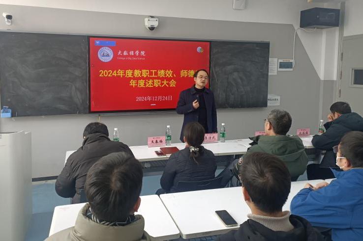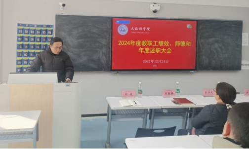 【AC米兰中文官方网站讯】为贯彻落实校发<关于开展2024年度绩效考核工作的通知>、以及江服人事发〔2024)19号<关于开展2024年度米兰官网教职工师德和年度考核工作的通知>的文件精神,2024年12月24日13时,米兰官网于主教楼329召开了2024年度教职工绩效、师德和年度述职大会。校长助理李沛武教授、学院院长徐照兴教授、党总支书记王春梅、副院长赵德福教授、副院长刘巍等领导及学院全体教职工出席了本次会议。