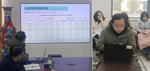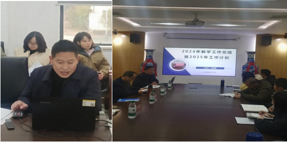 分管教学副院长赵德福首先发言。他总结了2024年学院在教学工作方面取得的显著成绩,重点讲述了本学年在全校教学考核各指标的完成情况,学院最终在全校排名中位居第二。赵副院长通过对每一指标点进行分析,得出存在的不足之处,如调停课、教学赛事、语言文字等方面,并提出了针对性的改进措施。对于2025年,他提出了加大课程资源建设、加大教学改革力度、凝练教学成效申请教学成果奖和加大教学团队建设的工作目标。