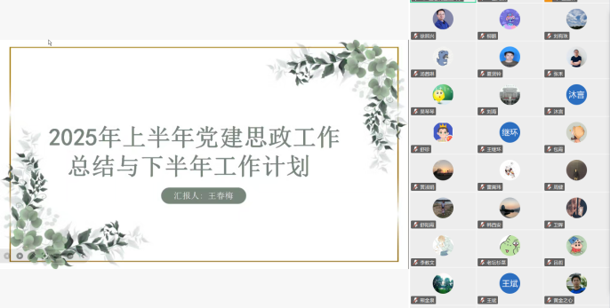 党总支书记王春梅以“红织码”党建品牌建设为切入点,展示了党建与业务深度融合的显著成效。学院成功创建“红织码”党建品牌,完成16项校级和2项省级大学生创新创业训练计划项目立项,在中国国际大学生创新大赛中获校级三等奖并进入重点打磨项目池,学院教师党支部书记工作室获学校“双带头人”教师党支部书记工作室。同时,成立“红软先锋创新社”和“代码红帆编程社”,获校级专业社团认证,成为专业拔尖人才储备库。在就业工作方面,2025届毕业生考研率达4.33%,学院荣获学校考研先进单位称号,截止7月3日学院就业率达到84%,彰显了学院在人才培养和就业指导上的卓越成果。同时指出了暑期及下个学期要完成的主要工作。
