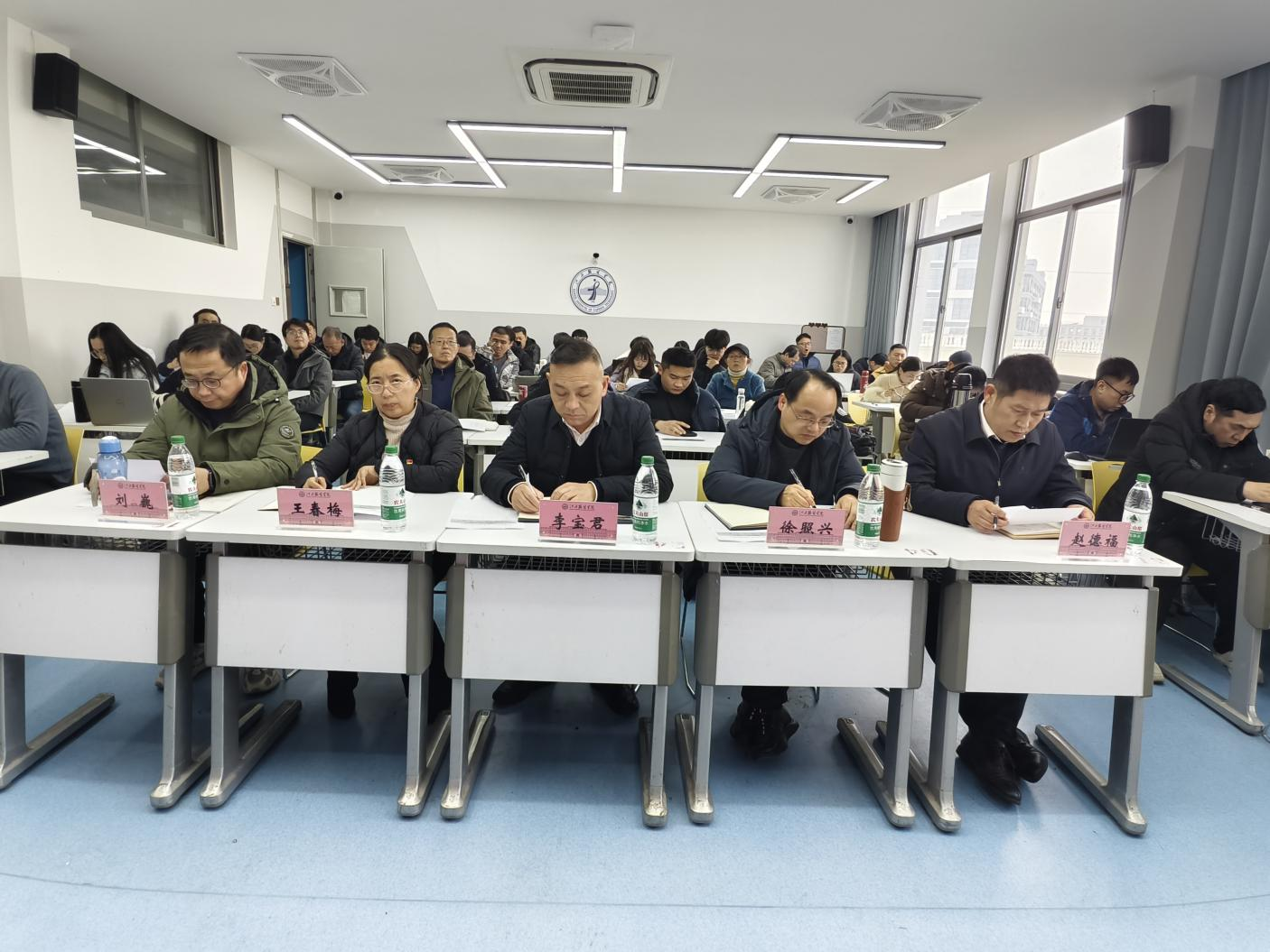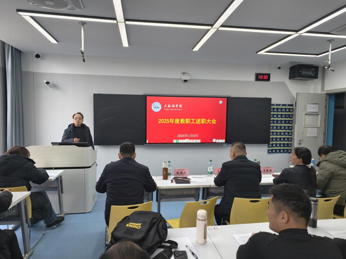 随后,全体教职工依次上台进行述职汇报。整个述职过程,既像是一场严谨的工作复盘与同行评议,也像是一次难得的全院深度交流。通过聆听彼此的汇报,老师们不仅了解了学院不同领域的工作进展,也在无形中相互参照、汲取经验。