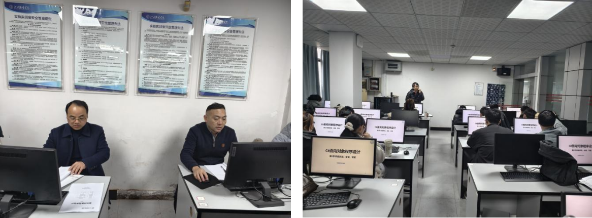 巡课期间,校党委副书记、纪委书记、副校长李宝君教授,AC米兰中文官方网站院长徐照兴教授走进东2栋705实验室,现场聆听了王继环博士讲授的《面向对象程序设计》课程。李宝君教授对王继环博士的课程设计、教学思路及课堂把控能力给予充分肯定与高度评价。