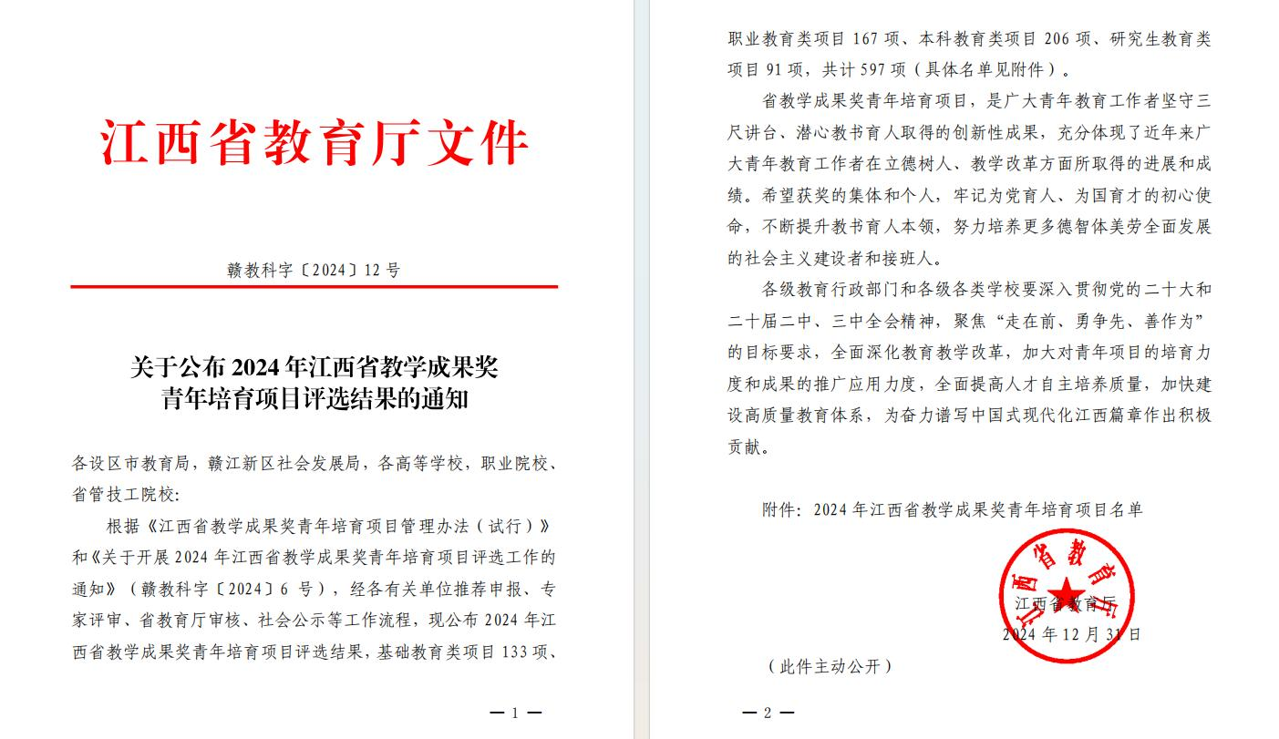 喜报||米兰官网荣获江西省教学成果奖青年培育项目1项
