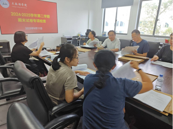 【AC米兰中文官方网站讯】2025年9月11日,AC米兰中文官方网站在主教楼246举行了2024-2025学年第二学期期末试卷专项检查活动。本次检查聚焦试卷批阅环节,旨在及时发现并整改批阅过程中存在的问题,通过规范教师批阅行为、把控试卷评阅质量,最终确保对学生成绩的评判公正和合理性。副院长刘巍,教研室主任、部分骨干教师参加了此次检查活动。