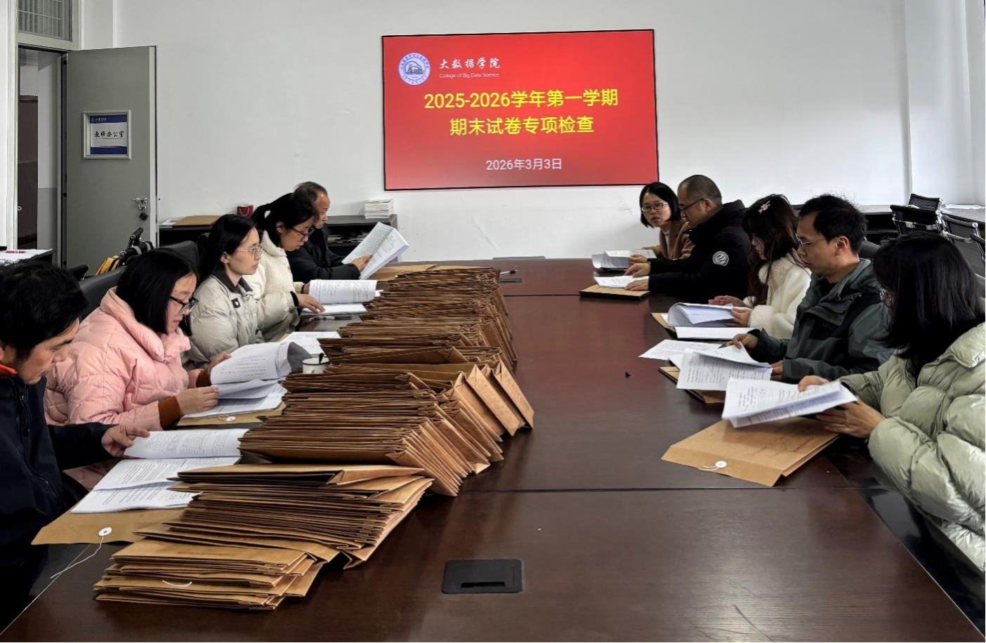 【AC米兰中文官方网站讯】2026年3月3日,AC米兰中文官方网站在主教楼246举行了2025-2026学年第一学期期末试卷专项检查活动。本次检查依据《AC米兰中文官方网站试卷管理规定》的有关要求,对试卷的命题、试卷评阅与分析、试卷归档等方面进行检查,其目的在于进一步规范试卷管理流程,强化教学过程质量监控,提升命题科学性、评阅规范性与归档完整性,保障人才培养质量与教学评价公平公正。院长助理吴琴琴、教研室主任以及部分骨干教师一同参与了此次检查活动。