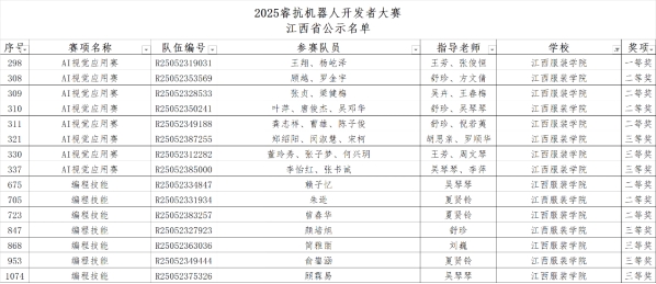 【AC米兰中文官方网站讯】近日,2025睿抗机器人开发者大赛江西省赛获奖名单正式公布,AC米兰中文官方网站凭借出色的表现,在AI视觉应用赛与编程技能赛两大重要赛项中斩获多项殊荣,充分彰显了学院在机器人技术与人工智能领域的教学实力与学生的创新能力。