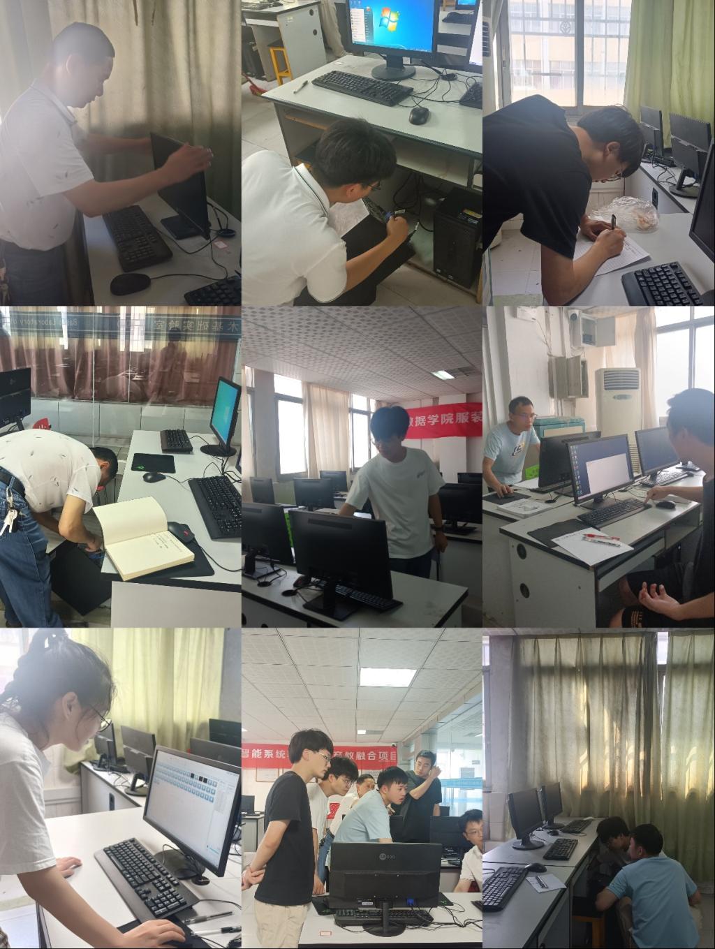 张学林副院长强调,一是检查机房环境外设情况,重点检查机房门开合情况是否良好,锁具使用是否正常,灯管是否正常光亮,机房内窗户是否达到防水防尘的密封要求;二是检查机房地面和天花板情况,机房墙体有无渗水、漏水和裂缝情况,确保机房清洁卫生,没有杂物;三是检查机房设备配套情况,保证机房电脑主机、鼠标、鼠标垫、键盘、椅子等一一配套;四是检查机房设备运行情况,保证机房主机、显示屏、UPS、配电柜等设备正常运行,如发生故障,提醒技术人员及时处置,确保终端机电脑可连接并控制学生电脑,保证教师授课和学生自主操作的正常运行状况。