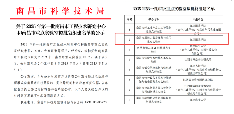 喜报||米兰官网服装大数据开发与应用重点实验室成功入选 2025 年南昌市重点实验室组建名单