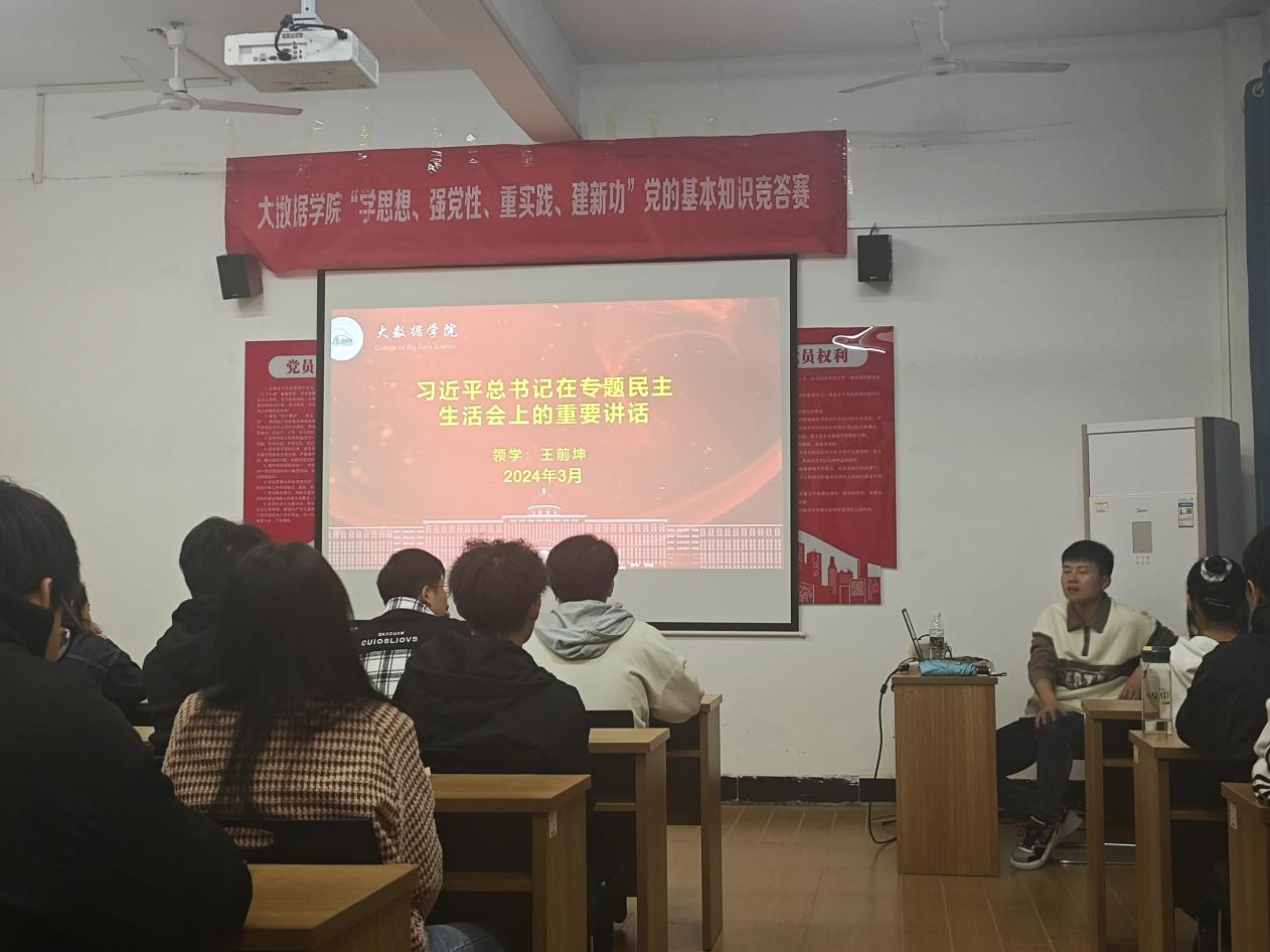 【AC米兰中文官方网站讯】为了深入学习习近平总书记在专题民主生活会上的重要讲话精神、学习习近平总书记有关坚持和完善人民代表大会制度的重要思想、关于保障人民当家作主的重要论述和习近平对江西新余市渝水区临街店铺火灾事故做出重要指示精神。AC米兰中文官方网站于2024年3月13日在党员活动室召开主题为“学思想、强党性、重实践、建新功”主题党日活动。本次会议由王前坤老师主持,大数据36期、37期入党积极分子参加本次会议。