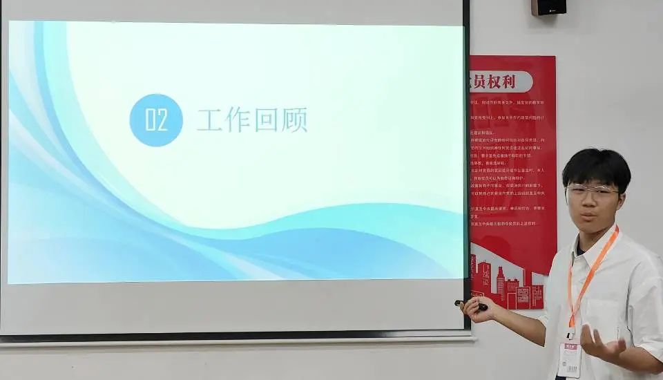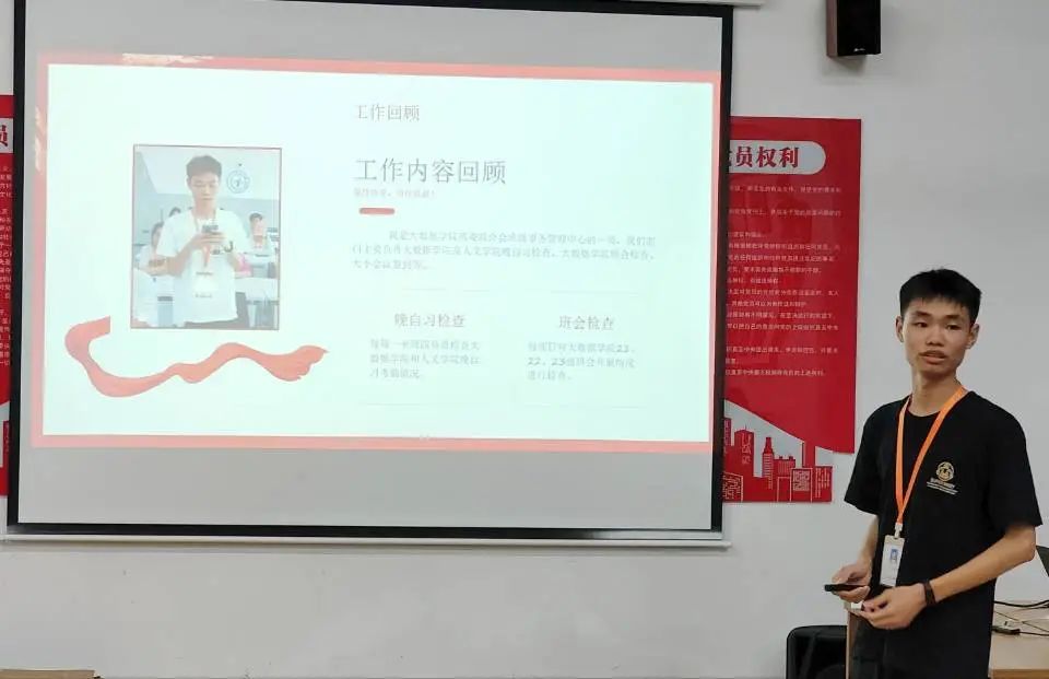 学工办副主任周文琴提到以责任心为基础,提高执行力,在学习、生活、工作中做好带头模范作用,强调要总结过去、展望未来,并鼓励全体学生以奋发的精神、昂扬的斗志、务实的作风创造更加辉煌的成绩。其中注意三点建设:一是筑牢思想之魂,赓续红色血脉,在党史学习中夯实信仰根基;二是笃行奋斗之姿,锤炼过硬本领,在砥砺奋进中掌舵人生航向;三是紧抓创新之要,把握时代主题,在实学实干中促进全面发展。