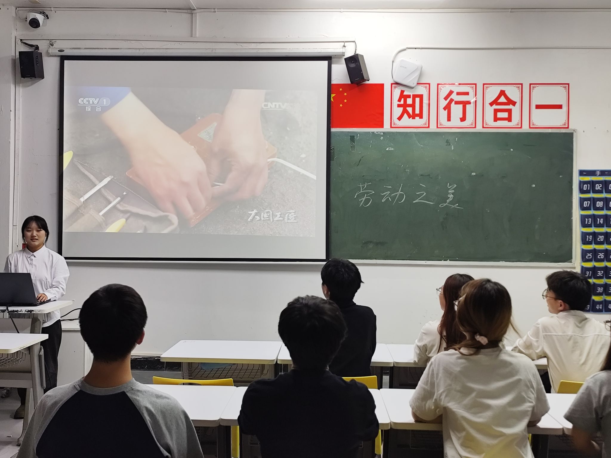 随后,活动进入核心环节——观看《大国工匠》纪录片。纪录片中,一位位大国工匠的故事感人至深。钳工师傅凭借着一双巧手和多年如一日的刻苦钻研,在毫厘之间精雕细琢,将零件精度控制到极致,为高端装备制造筑牢根基;铁路建设者头戴安全帽,在艰苦的野外环境中,不惧烈日严寒,不怕艰难险阻,为了国家铁路事业的蓬勃发展,默默坚守在施工一线。他们以实际行动诠释了“劳动之美”,展现出执着专注、精益求精、一丝不苟、追求卓越的工匠精神。同学们全神贯注地观看,被工匠们的事迹深深触动,不少同学表示,从这些大国工匠身上,看到了劳动所蕴含的无穷力量与价值。