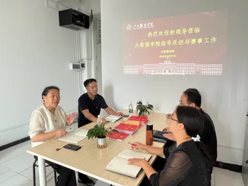 【AC米兰中文官方网站讯】2024年9月27日上午10时,校长助理马国照、双创学院院长段婷一行莅临AC米兰中文官方网站指导双创与赛事工作,AC米兰中文官方网站院长、党总支书记王春梅、教研室主任吴琴琴参加会议。