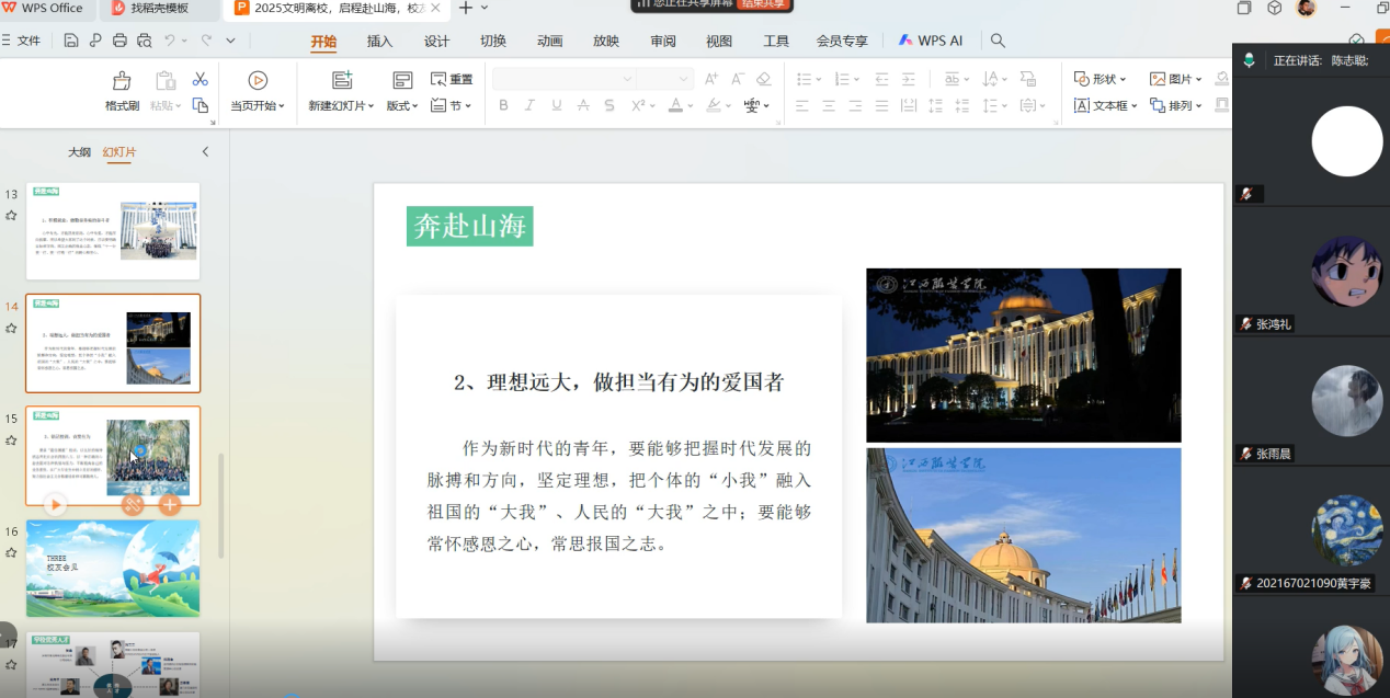 【AC米兰中文官方网站讯】2025年5月25日晚,AC米兰中文官方网站以线上形式举办了2025届毕业生第八次线上主题班会。本次班会的主题为“文明离校,启程赴山海,校友会见!”,聚焦毕业生离校关键事项,为毕业生顺利开启人生新旅程筑牢基础,在毕业季为同学们送上温暖关怀与殷切期望。