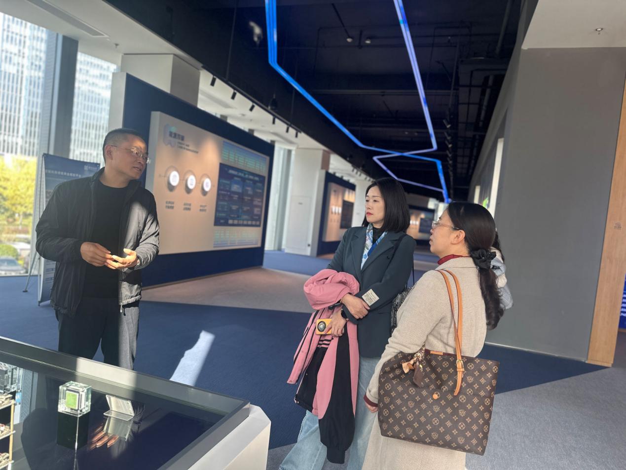 在杭州趣链科技有限公司,王书记一行实地走访参观了企业技术研发中心与数字展示平台,详细了解企业在区块链领域的技术领先与业务布局。双方围绕区块链行业发展趋势、应用市场、人才培养等核心议题展开深度交流,就探索校企协同育人路径达成共识。