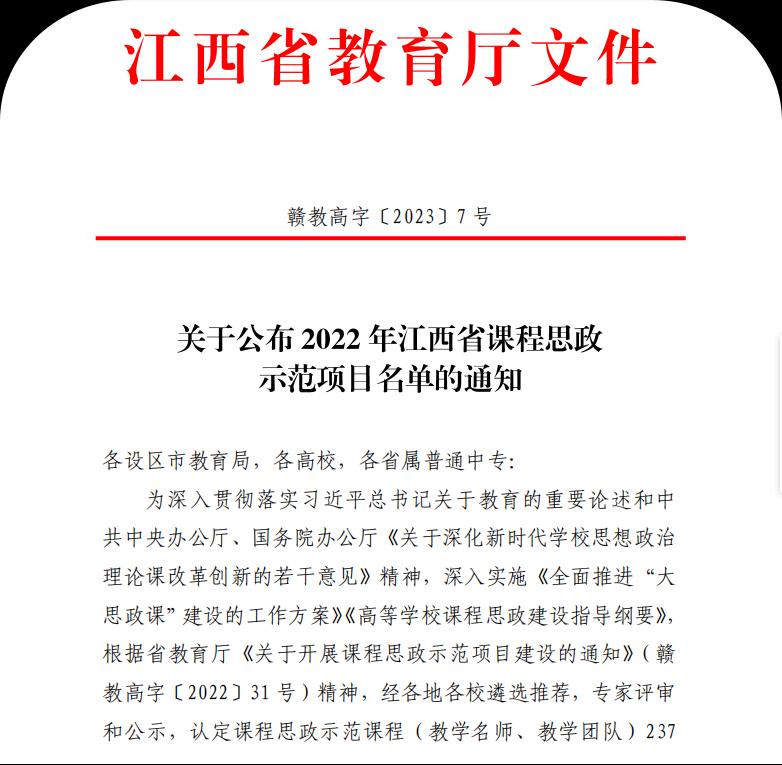 【AC米兰中文官方网站 讯】近日,江西省教育厅发布了《关于公布2022年江西省课程思政示范项目名单的通知》(赣教高字﹝2023﹞7号)文件,米兰官网徐照兴教授主讲的《ASP.NET动态网页设计》课程认定为省级课程思政示范课程(教学名师、教学团队)。