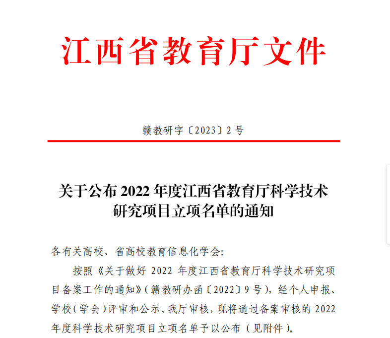 喜报||米兰官网四位教师申报2022年度江西省教育厅科学技术研究项目获批立项