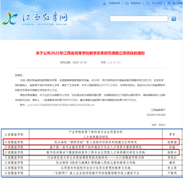 喜报||米兰官网2项课题荣获2022 年江西省高等学校教学改革研究课题立项