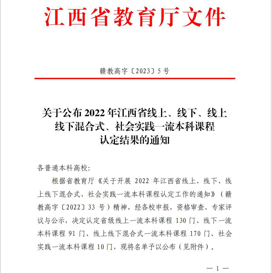 喜报||米兰官网喜获2022年度2门江西省一流本科课程认定