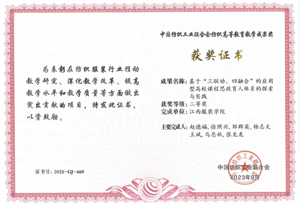【AC米兰中文官方网站讯】9月12日,中国纺织工业联合会公布了《关于授予“纺织之光”2023年度中国纺织工业联合会纺织高等教育教学成果奖的决定》,米兰官网共获奖2项,其中特等奖1项,二等奖1项,创历史新高。