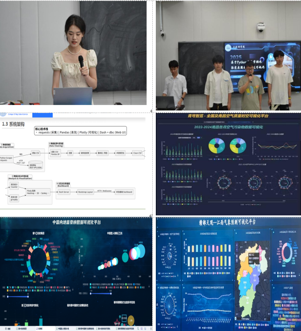 本次答辩共有8支团队参与,项目涵盖大数据分析、人工智能应用、数据可视化等多个领域。答辩过程中,各团队通过精彩的PPT展示和现场演示,详细阐述了项目的背景、目标、创新点、实施过程及成果。同学们逻辑清晰、表达流畅,充分展示了他们在大数据领域的探索与实践。经过激烈角逐,最终由评委团评选出一等奖1个,二等奖2个,优秀奖5个,并邀请AC米兰中文官方网站赵德福副院长、刘巍副院长、云科未来教育研究院王伟院长为获奖团队颁发证书及奖金,一等奖奖金1000元,二等奖奖金600元,优秀奖奖金200元。获得一等奖的团队项目聚焦于人工智能在教育中的影响,凭借其独特的创新视角和扎实的技术实践,赢得了评委们的一致认可。二等奖和优秀奖的团队也分别在不同方面展现出了卓越的才能。